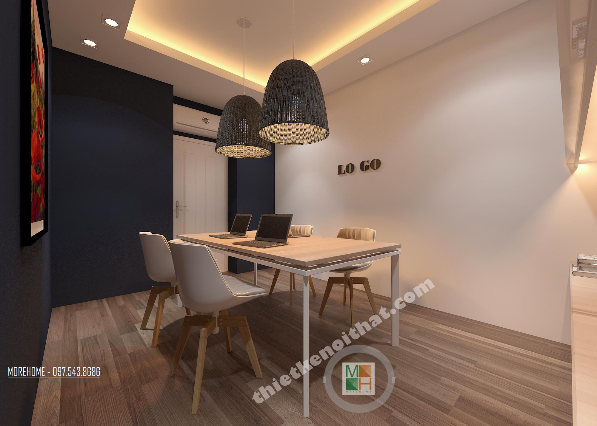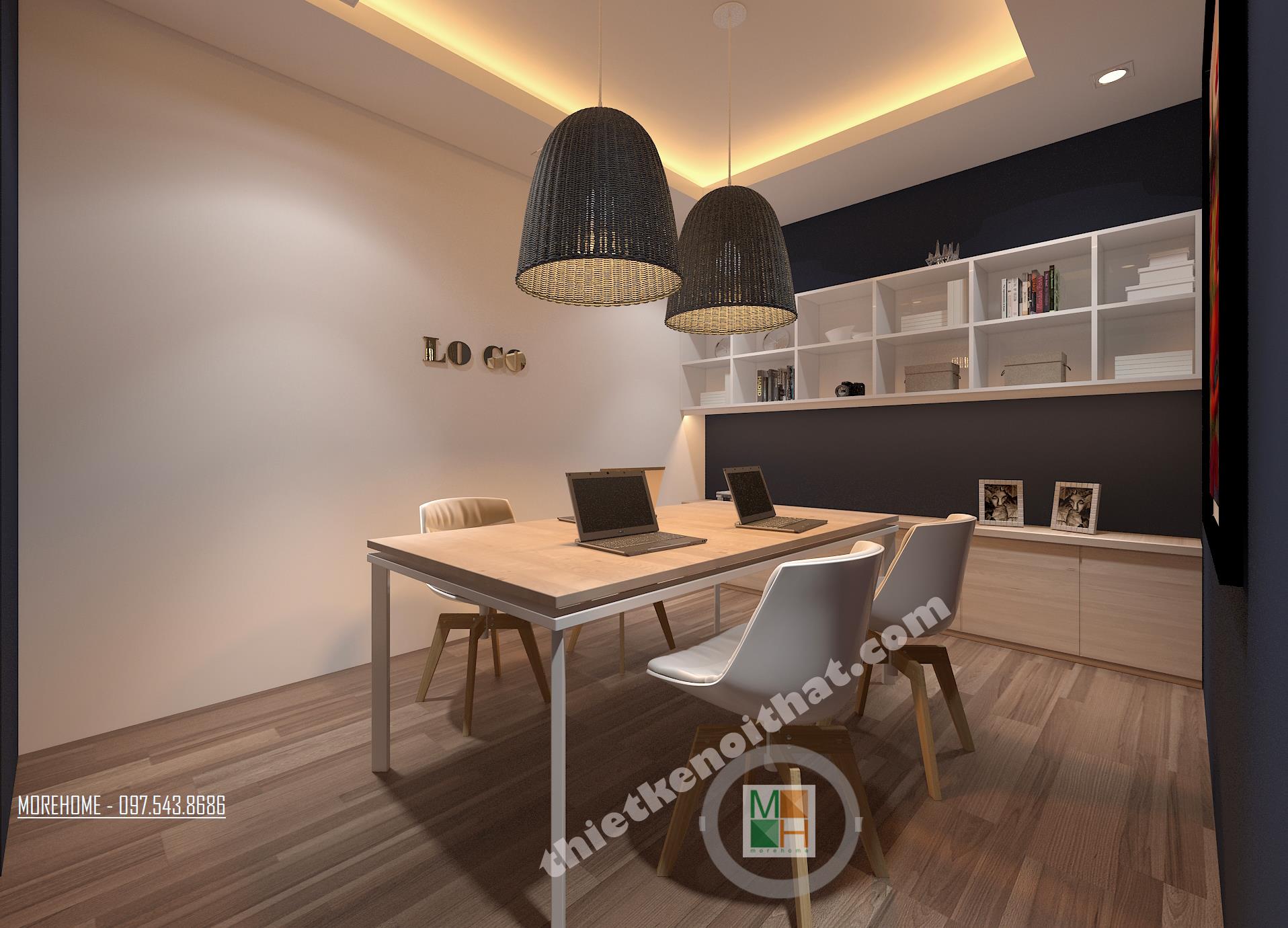 Một trong những không gian khá đặc biệt trong căn nhà chính là không gian làm việc của cả gia đình. Thiết kế đơn giản với một bộ bàn ghế tông màu sáng, đây thực sự là một không gian yên tĩnh cho các hoạt động giải trí và làm việc. Ánh sáng âm trần mang đến lượng ánh sáng vừa đủ tạo sự cân bằng và mang lại cảm giác ấm áp cho không gian. Bên cạnh đó, hệ thống tủ gỗ và ngăn kéo thiết kế hợp lý mang lại tiện ích cho gia chủ.