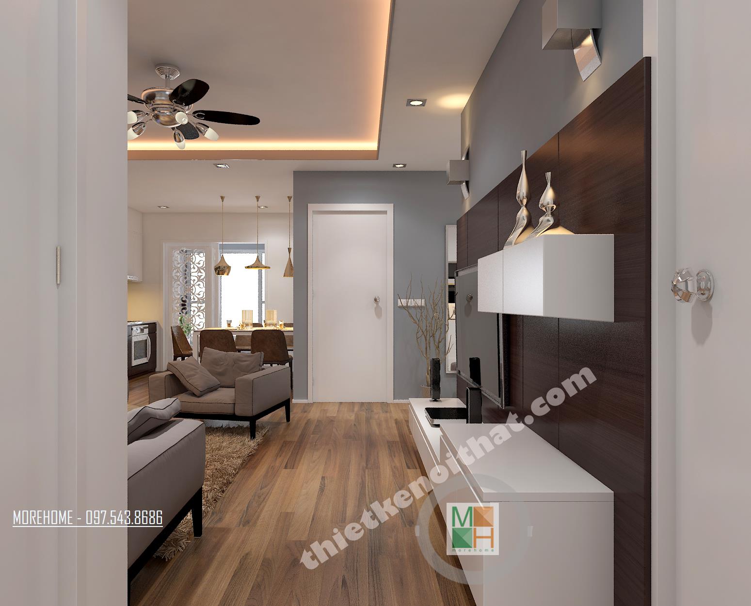 Thiết kế nội thất chung cư hiện đại tại chung cư CT4 sông Đà gây ấn tượng bởi phong cách thiết kế lạ mắt, trang nhã và rất ấn tượng. Kiến trúc sử dụng tông màu ghi và trắng làm chủ đạo, điểm nhấn là tông màu nâu veneer tối mang đến cho gia chủ cảm giác cân bằng và sang trọng. Một điểm đặc biệt trong căn nhà có lẽ chính là ánh sáng. Theo các chuyên gia, ánh sáng có ảnh hưởng lớn đến tâm trạng và hoạt động của con người, với một không gian bố trí ánh sáng cân bằng hài hòa, có sự tương hộ từ ánh sáng tự nhiên sẽ mang lại sức sống, cảm hứng cũng như sự ấm áp cho không gian sống đó. Chính vì lý do này mà thiết kế nội thất chung cư CT4 Sông Đà luôn đặt ánh sáng làm điểm nhấn gợi phong cách và cảm xúc cho căn nhà.