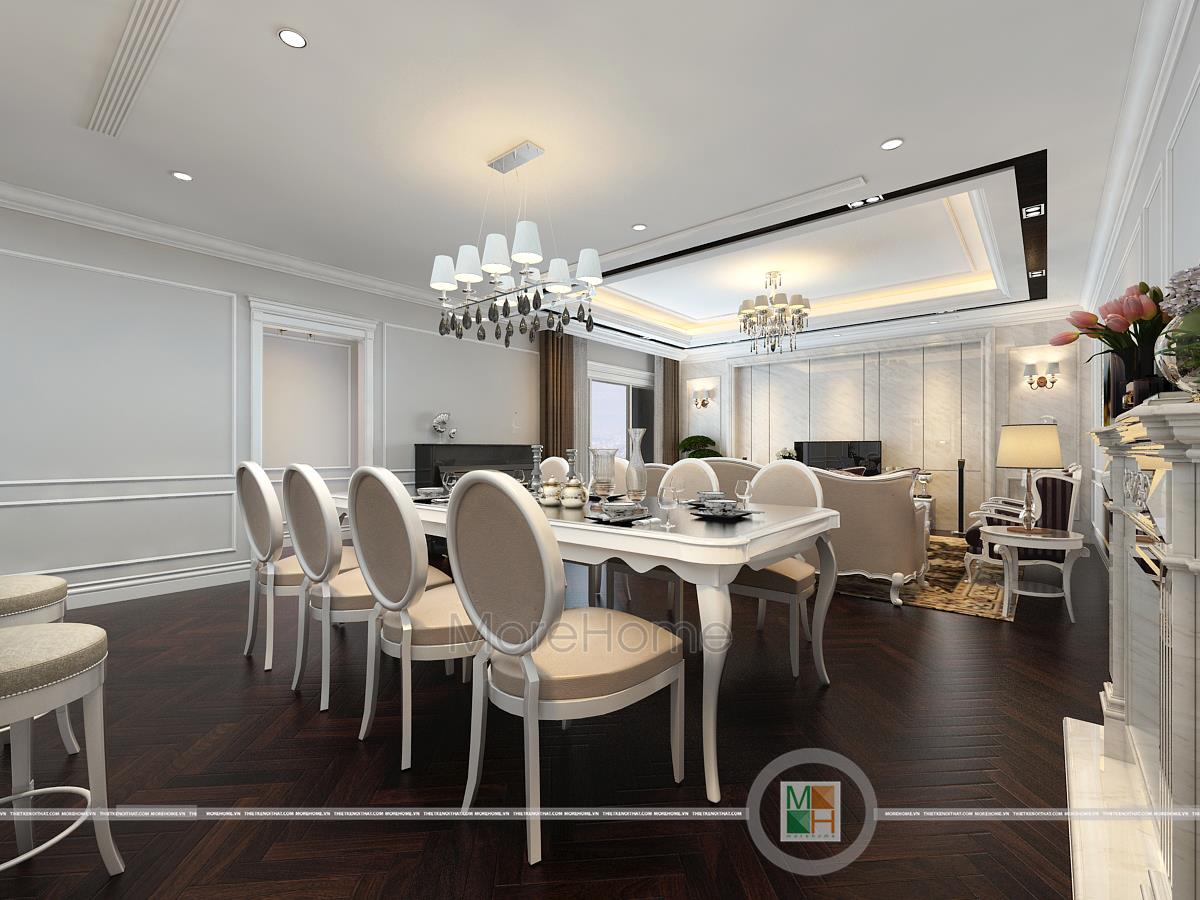 Đối với mỗi căn nhà, không gian nội thất bàn ăn là một trong những không gian vô cùng quan trọng, không đơn giản là nơi quây quần ăn uống, bàn ăn còn là nơi mọi thành viên dành thời gian trò chuyện, chơi đùa và chia sẻ với nhau. Chính vì vậy mà thiết kế nội thất không gian này luôn hướng đến sự dễ chịu, tiện nghi. Không quá cầu kỳ trong trang trí, không sử dụng các tone màu chói, quá nổi bật, không gian bàn ăn gợi sử tinh tế và dễ chịu. Thiết kế bàn chữ nhật dài, rộng đủ không gian cho cả đại gia đình và khá linh hoạt trong các bữa tiệc của gia đình.