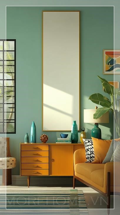 Với thiết kế này, phòng khách Mid-Century Modern tại Palm Springs không chỉ là nơi để thư giãn mà còn là một không gian nghệ thuật sống động, nơi mỗi chi tiết đều góp phần vào việc tôn vinh vẻ đẹp của sự đơn giản và thanh lịch.